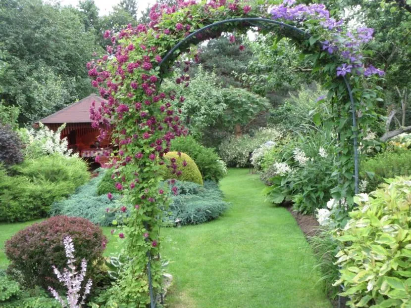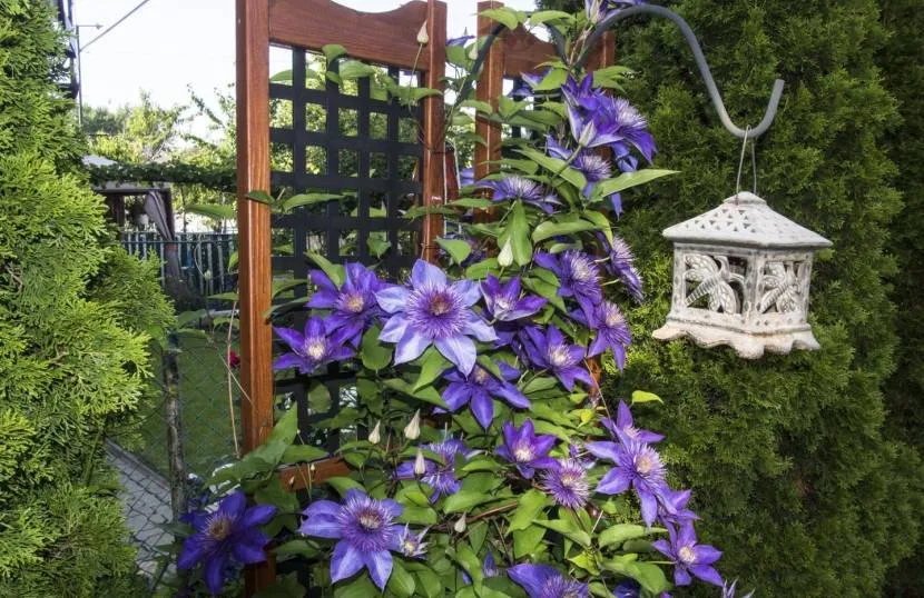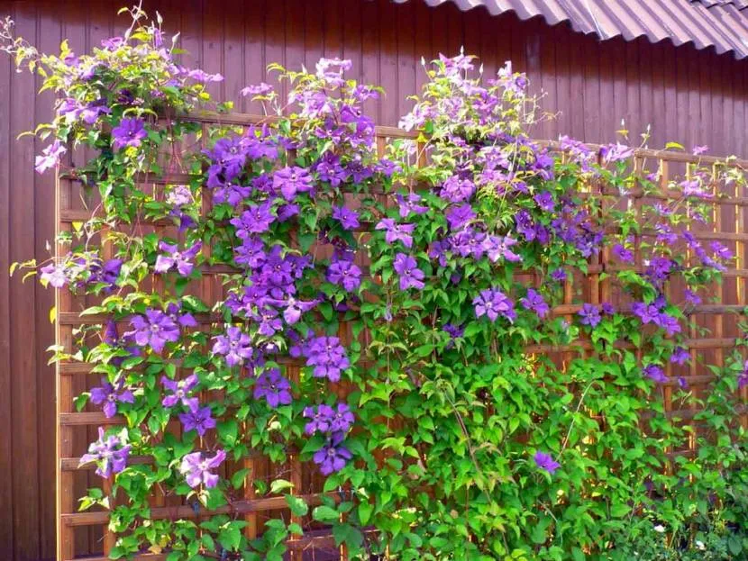 Клематисы часто называют королями лиан из-за их формы и богатства цветов. Их бархатистые и мерцающие звездчатые цветы густо покрывают длинные, сильно облиственные побеги.