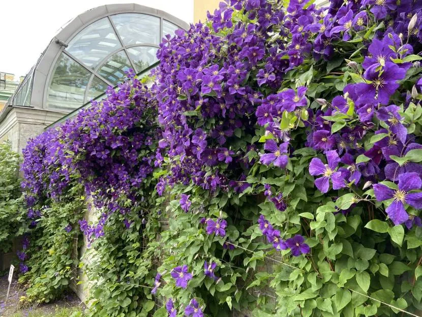 - Клематис (Clematis) – один из самых популярных видов вьющихся цветов. Он обладает красивыми цветами разных оттенков и разнообразными формами. Клематисы требуют регулярного полива и удобрения.