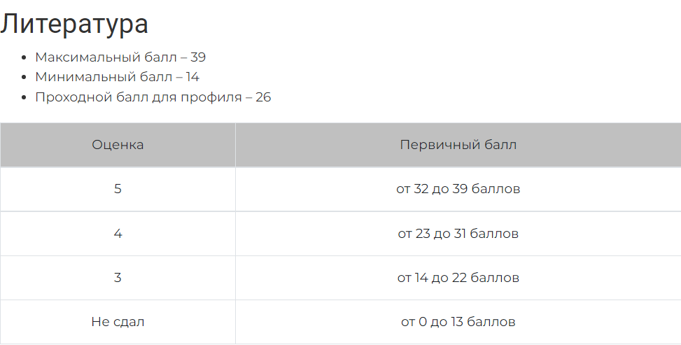 Это один из предметов по выбору, который часто сдают учащиеся, которые планируют поступать в гуманитарные ВУЗы. Чтобы сдать этот предмет, нужно проштудировать весь курс литературы за 9 классов. Баллы пригодятся учащимся, чтобы продолжить обучение в гуманитарных профильных классах. Посмотреть шкалу оценивания и перевести баллы в оценку можно с помощью таблицы.