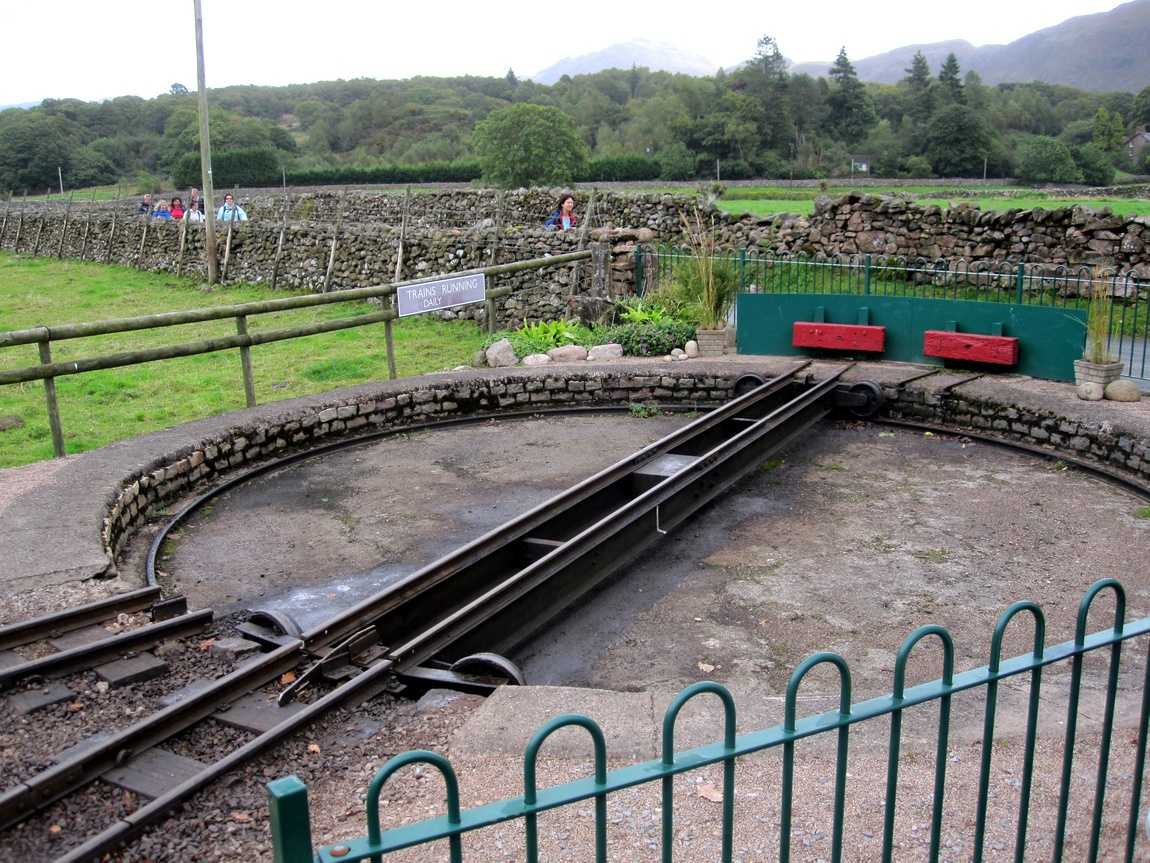 Паровозик разворачивается по радиусу, переходя на другие рельсы.