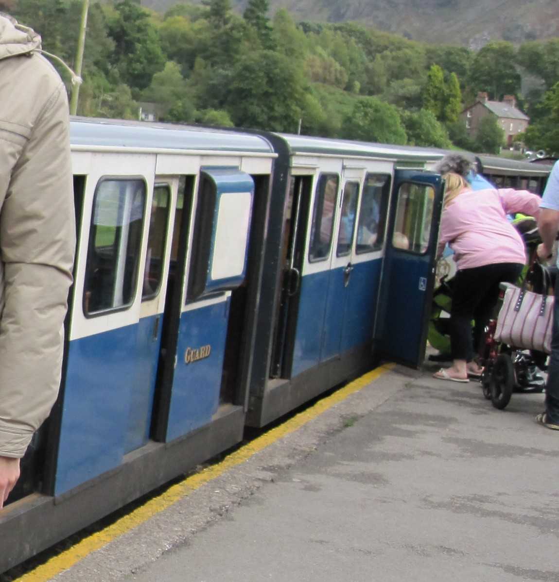 В Англии есть железная дорога, по которой ездит паровозик с открытыми вагончиками миниатюрной формы.