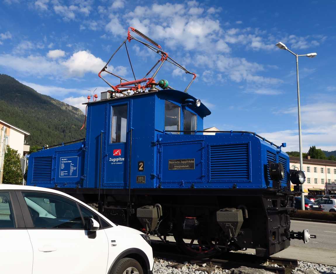 В городке Гармиш-Партенкирхе на газоне стоит старинный локомотив синего цвета 1930г. В первой половине 20 века его использовали для подъема поездов на вершину горы Цугшпитце.