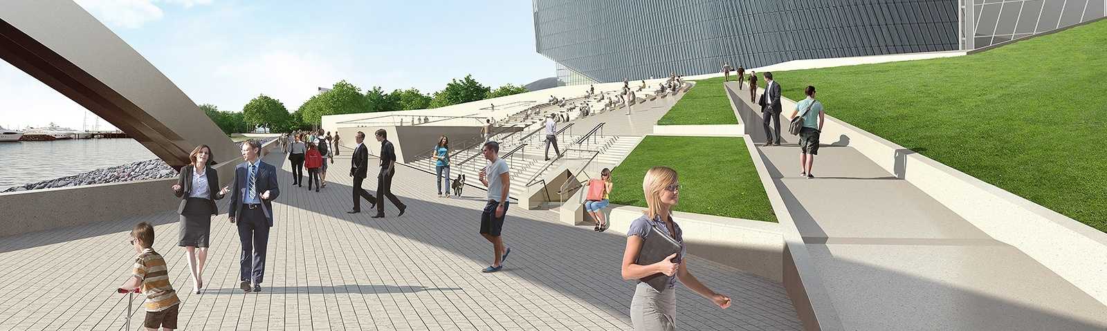 Набережная и открытый амфитеатр с видом на залив