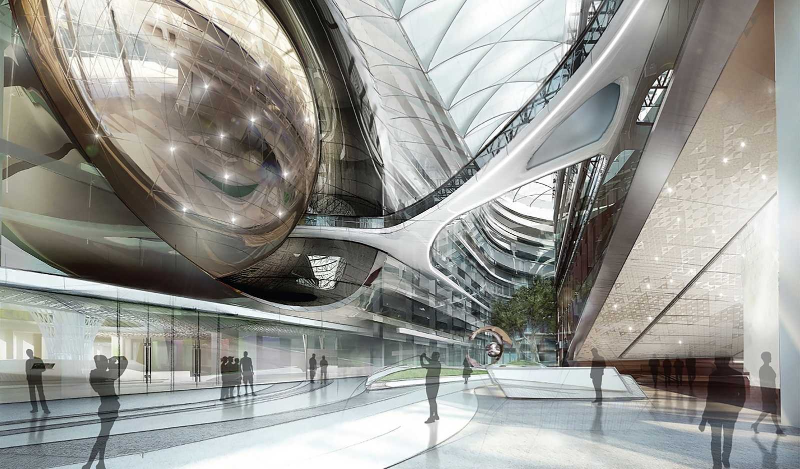 Шар-планетарий в здании с атриумом в комплексе Лахта Центр
