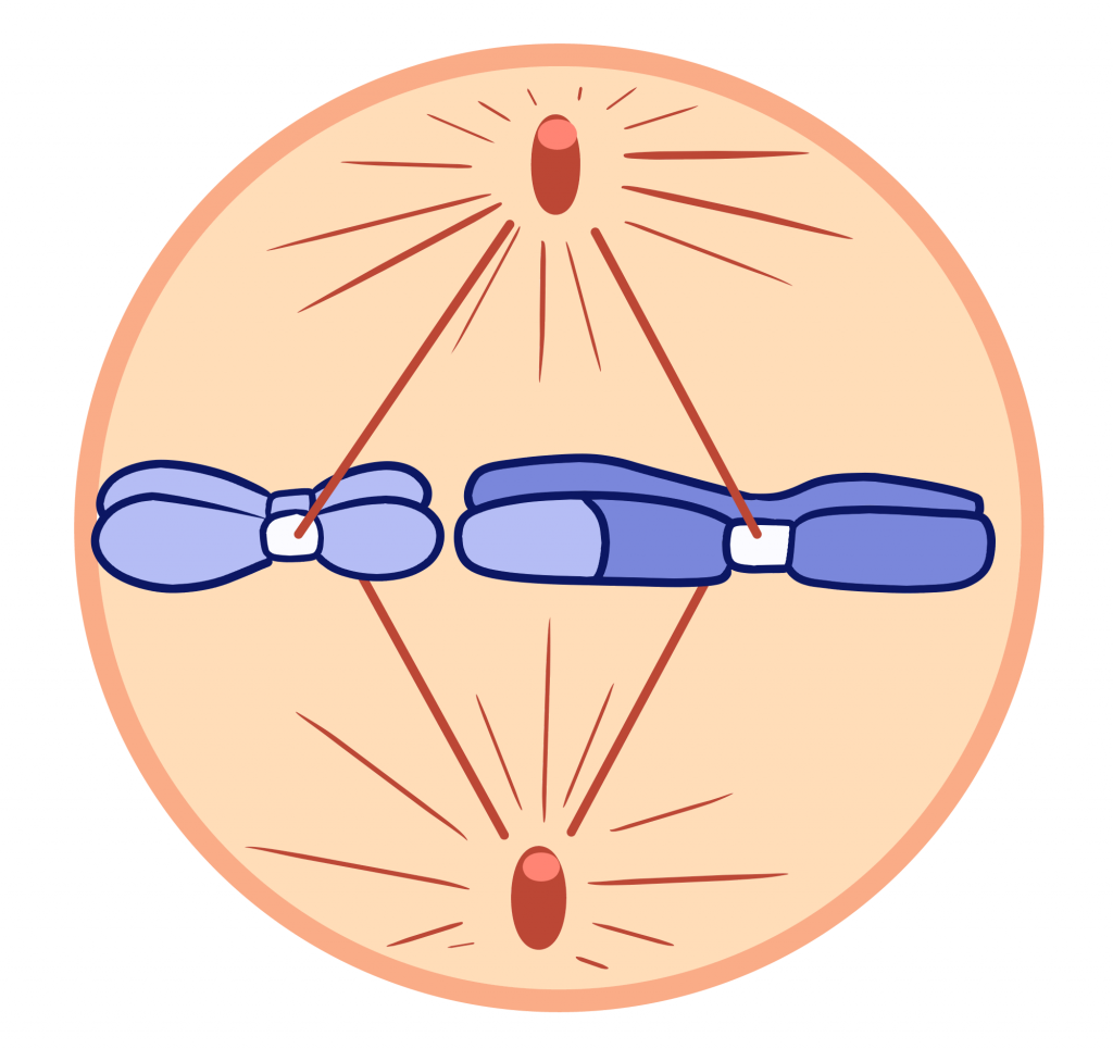 Хромосомы, как ответственные танцоры хоровода, выстраиваются в линию по экватору клетки. Одним концом нити веретена деления прикрепляются к центромерам, другим концом к центриолям. |