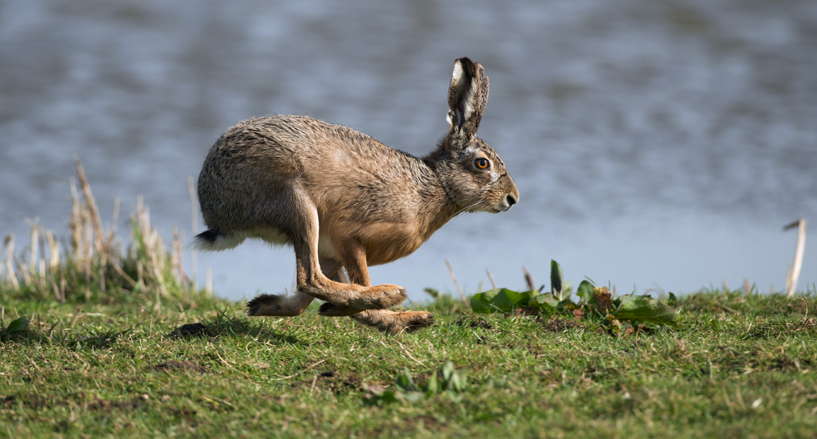 Длинные тонкие лапы зайца позволяют развивать ему большую скорость.