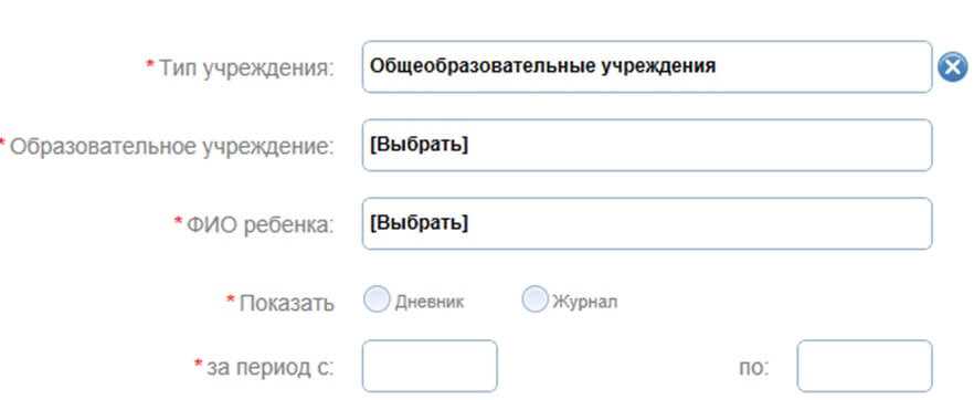 - Укажите необходимый для показа раздел: электронный дневник, журнал.