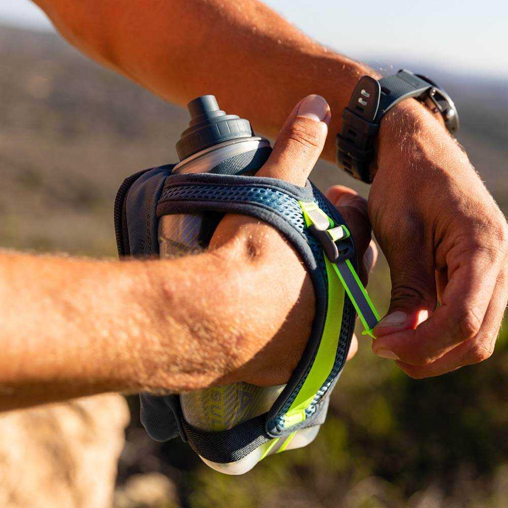 - Если вы бегаете на не очень длинные дистанции и обходитесь минимальным количеством воды во время пробежки, то присмотритесь к беговым флягам с держателем небольшого объема, чтобы избежать нарушения баланса веса. Периодически перекладывайте фляжку из одной руки в другую.