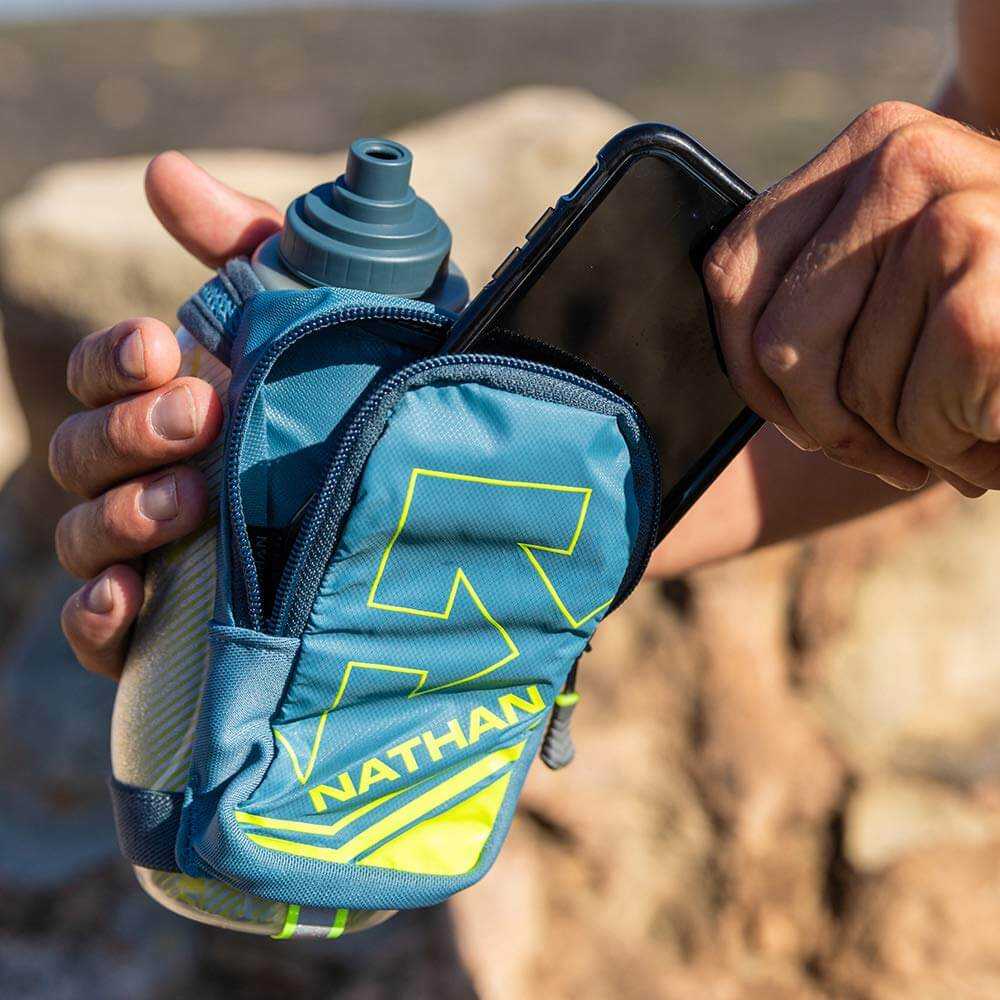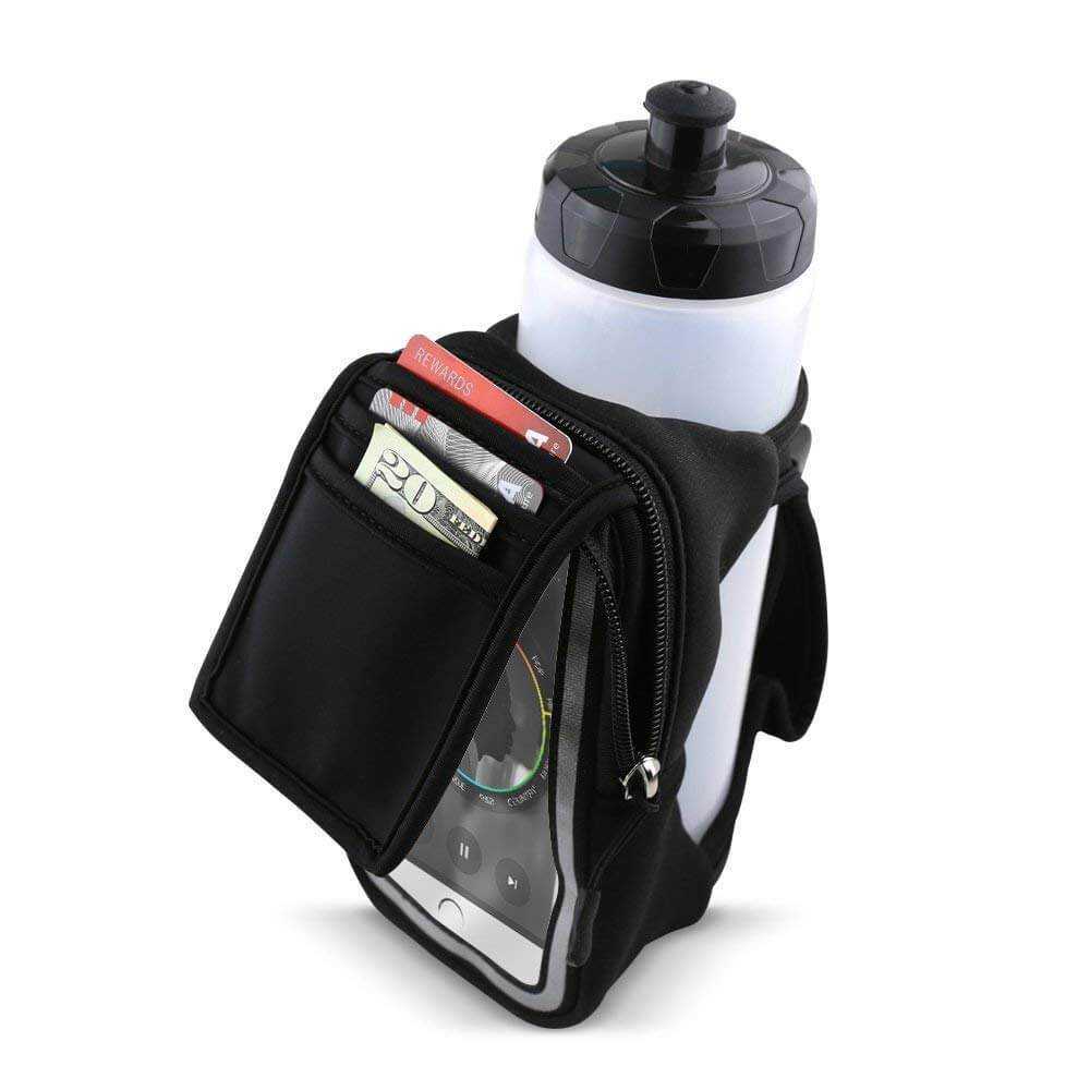 Специально для бегунов придумали фляги с ремешком, который позволяет зафиксировать емкость с водой на руке. Здесь же и миниатюрный карман, в который можно положить необходимые мелкие вещи: смартфон, ключи, деньги, энергетический батончик.