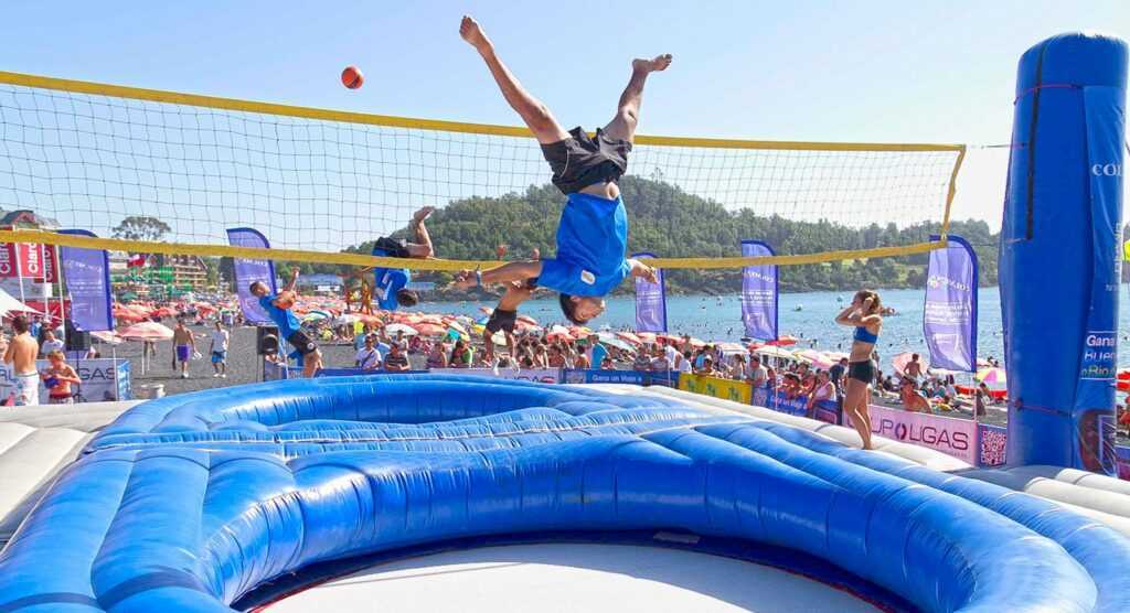 Итак, знакомьтесь: боссабол. Волейбол на батутах. Ну как на батутах. На надувной подушке, у которой под сеткой расположены пружины. Когда мяч летит прямо на вас, хочется прыгнуть выше головы, чтобы забить противникам ошеломительный гол. И теперь такая возможность есть.
