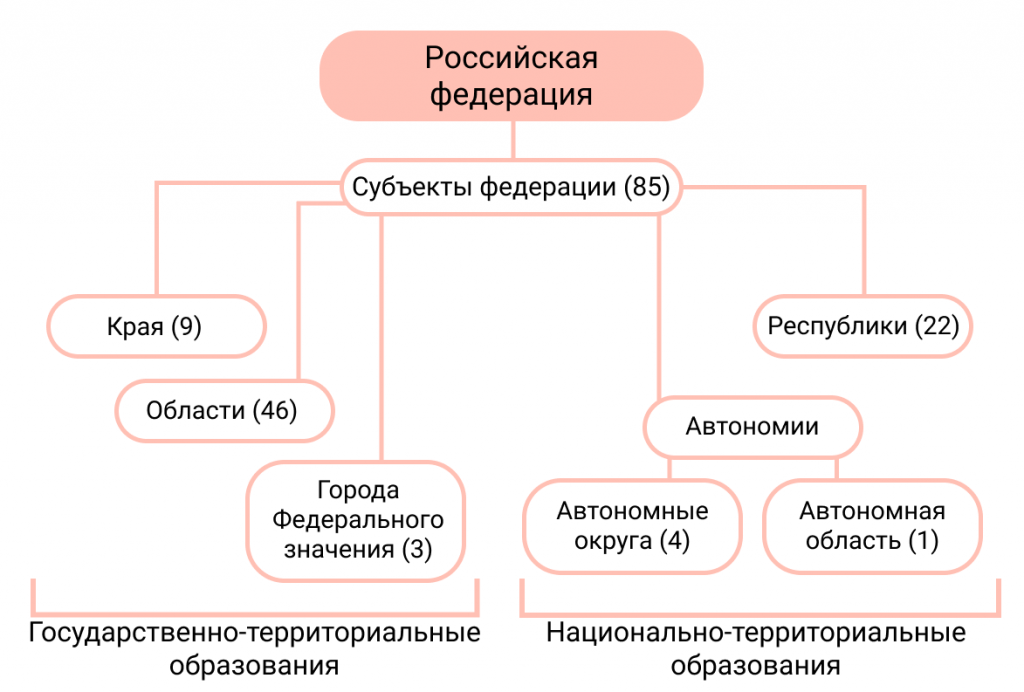 Россия по форме правления является смешанной республикой, когда государством управляет президент и парламент. По форме государственного устройства – федерацией. Так как мы являемся федерацией, появляется административно-территориальное деление на субъекты. У нас их целых 85 штук.