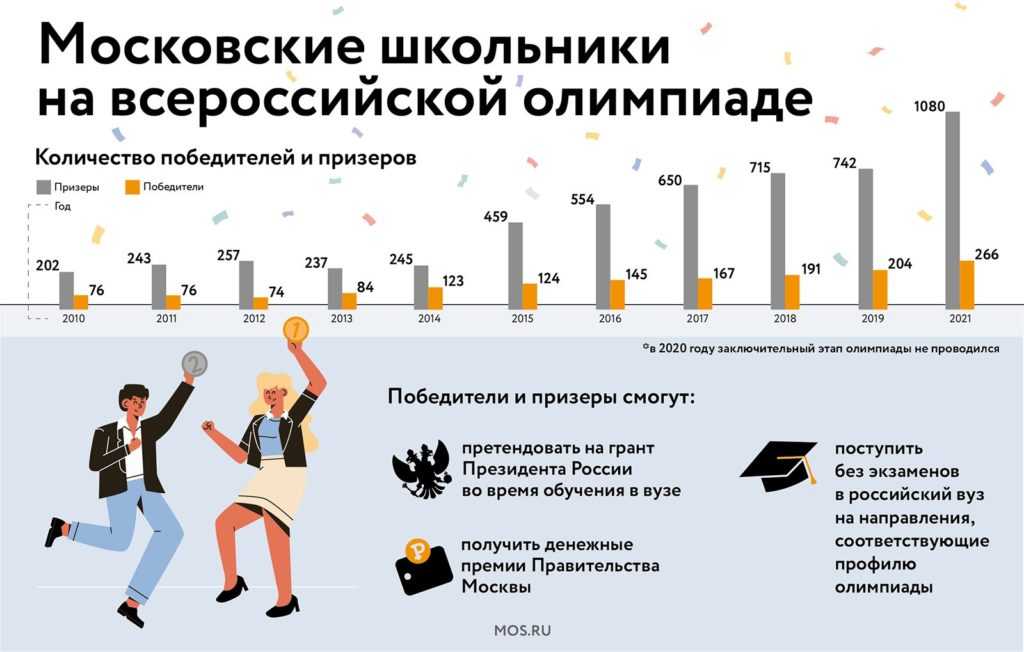 Успешную работу в этом направлении в конце прошлого года отметил Российский совет олимпиад школьников. Он объявил благодарности 204 московским школам, которые подготовили больше всего победителей и призеров олимпиад.