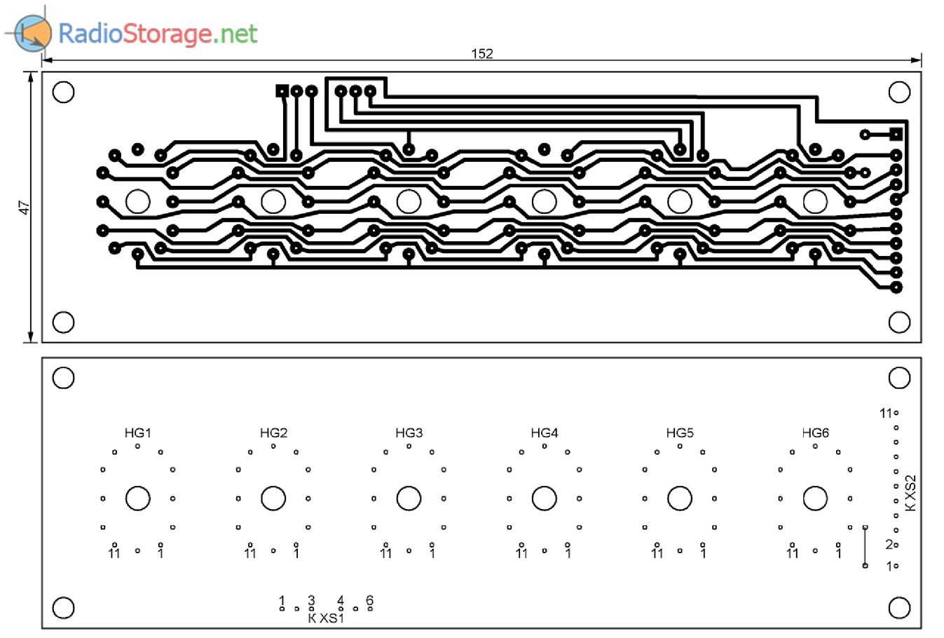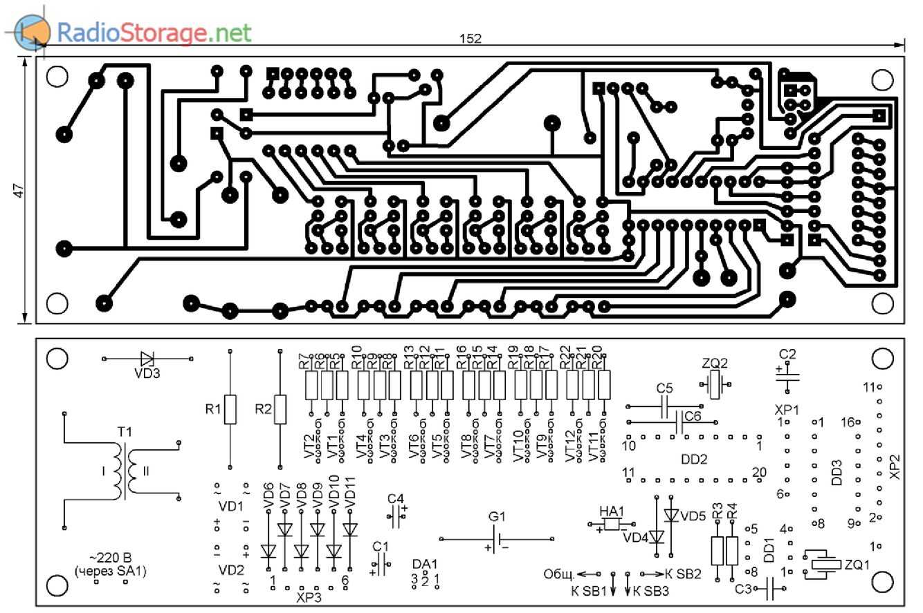 Рис. 4. Печатная плата для схемы часов с календарем на индикаторах ИН-12.