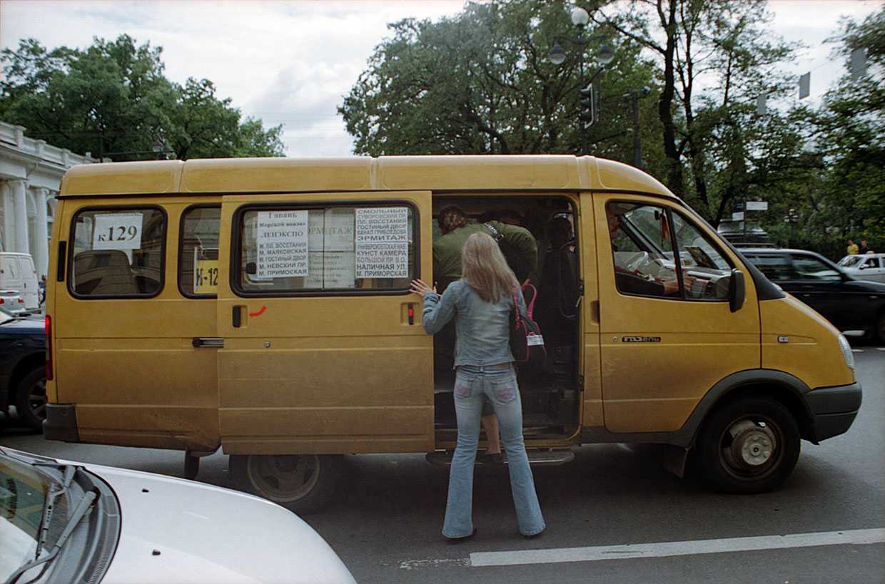 Часто используемый способ передвижения по большим городам – это маршрутное такси (маршрутка). Маршрутка ходит по определенному маршруту, приходится ее на улице „ловить“ и потом сказать водителю, где вы хотите выйти.