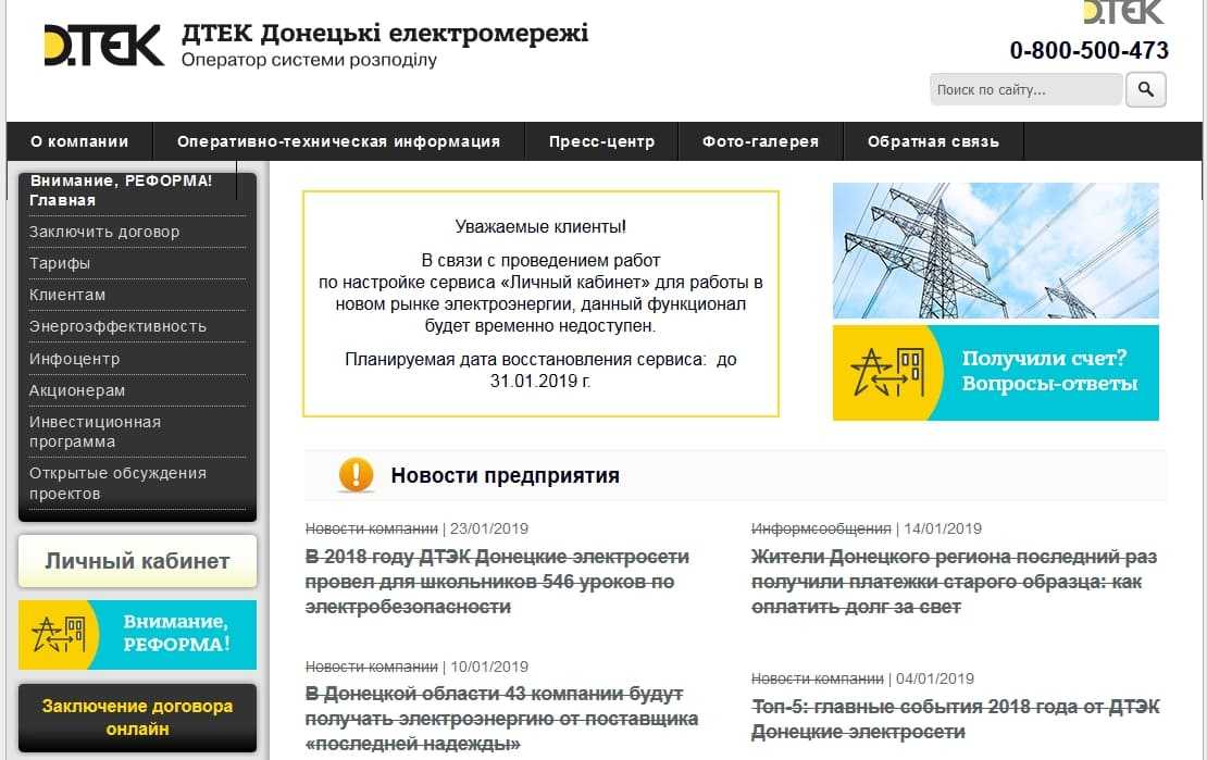 Личный кабинет для юридического потребителя ДТЭК Донецкоблэнерго