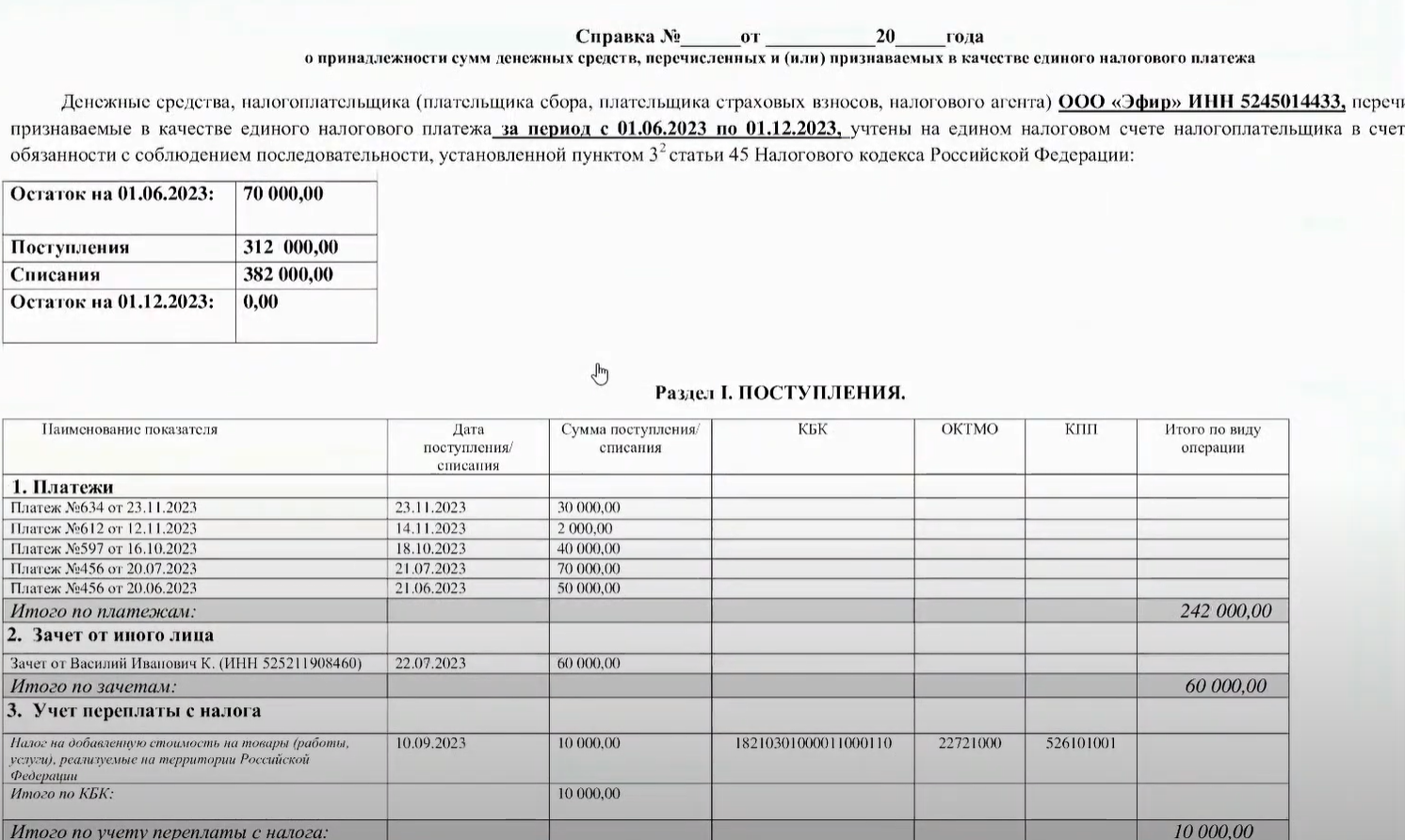 Из ЛК ЮЛ можно запросить Справку о принадлежности сумм ЕНП, кликнув по нужной ссылке в группе Документы нижней части экрана. Эта справка поможет понять, как распределился ЕНП по конкретным налоговым обязательствам.