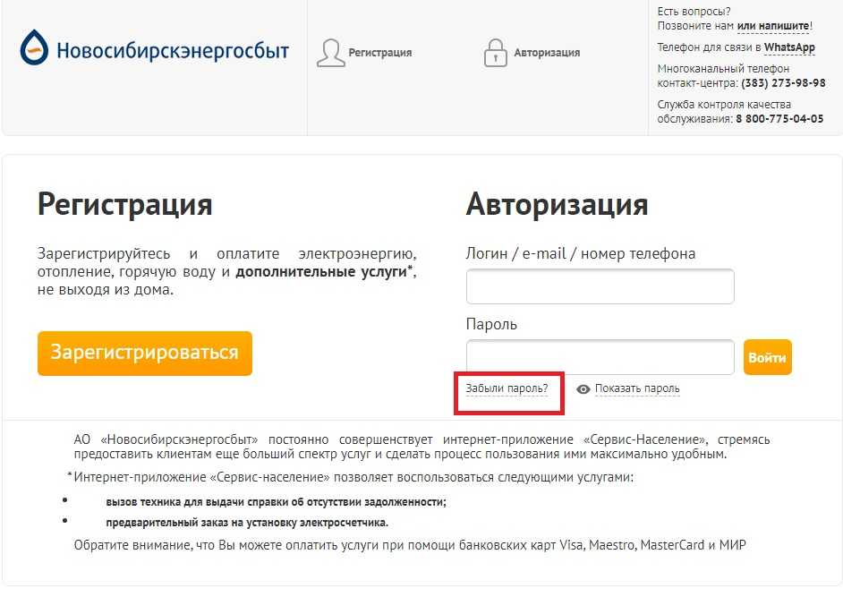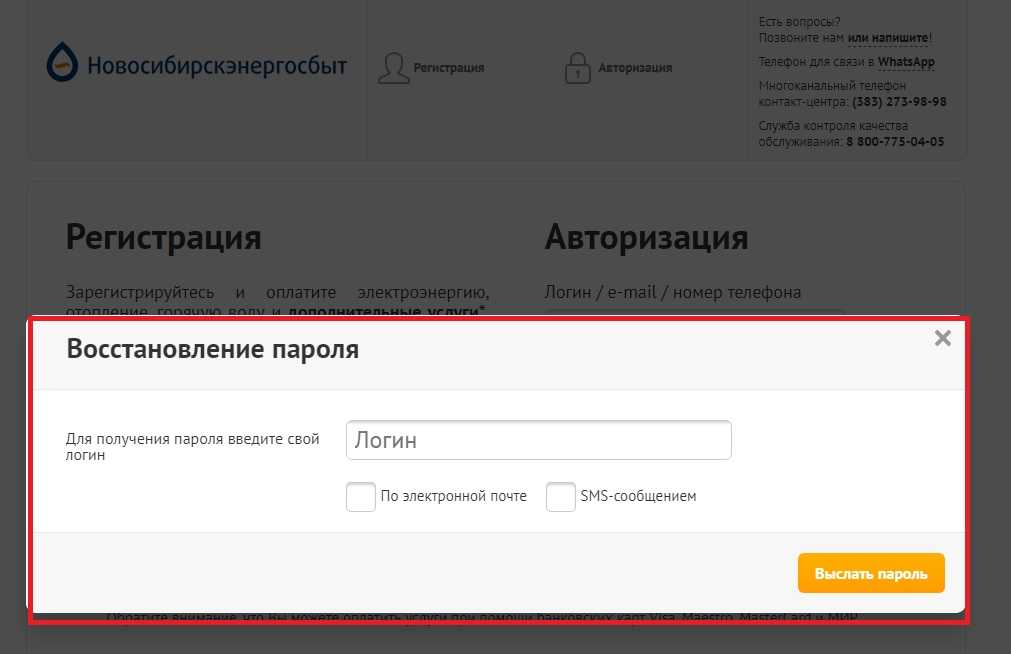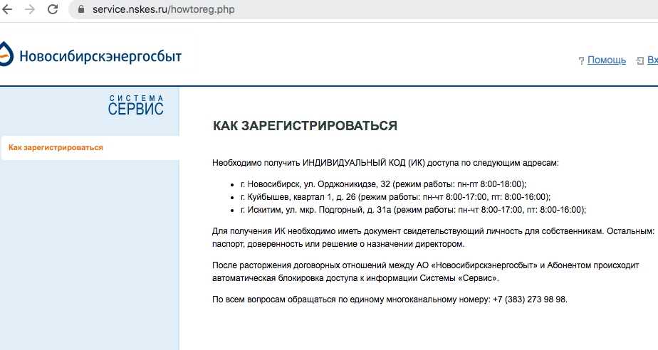 Регистрация в личном кабинете Новосибирскэнергосбыт