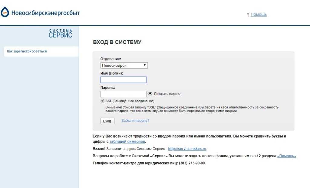 Вход в систему личный кабинет для юридических лиц: service.nskes.ru.