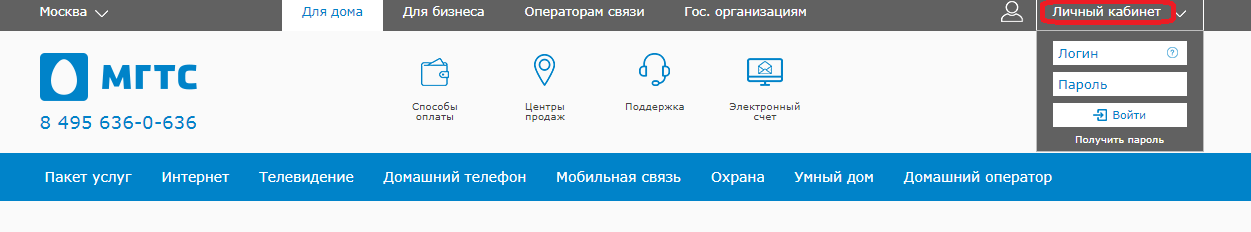 Личный кабинет клиента МГТС разработан для удобства и оперативности, поэтому здесь нет ничего лишнего.