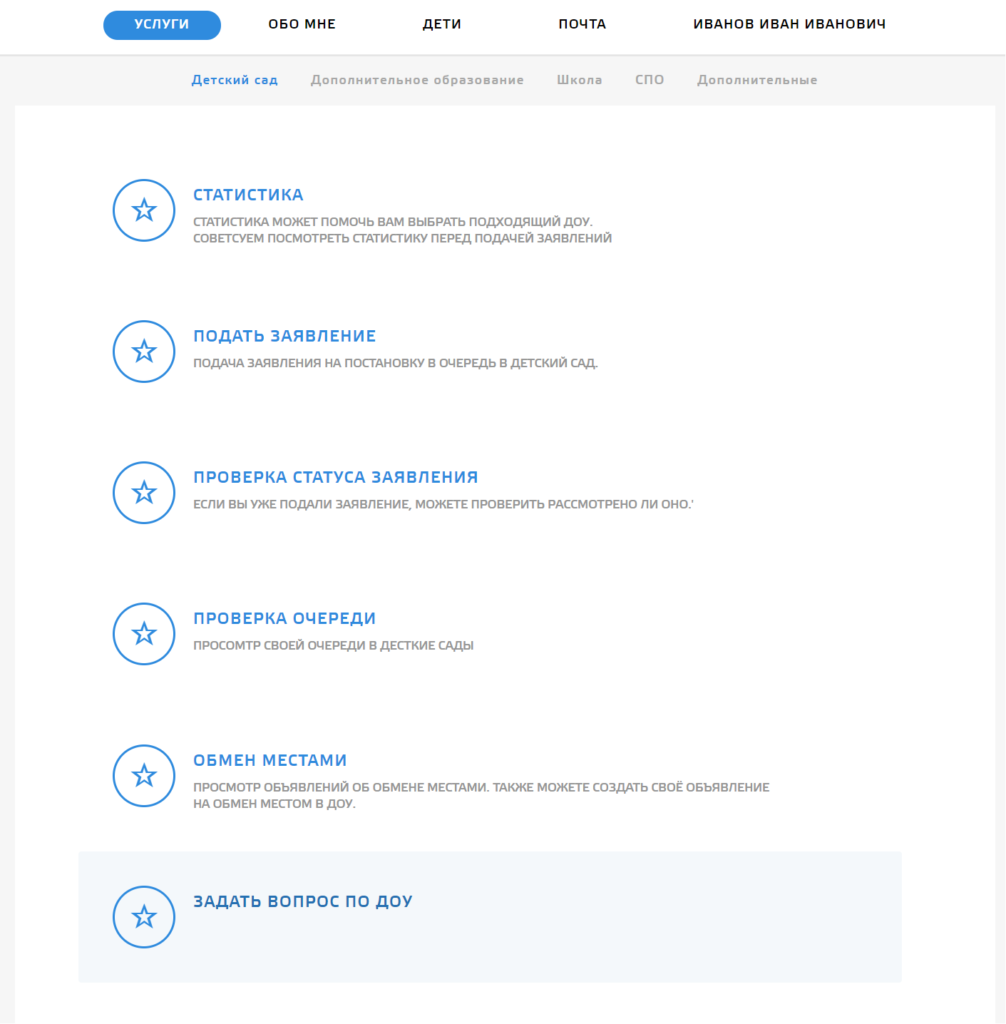 - просматривать статистику загруженности очередей в детских садах (полезно знать перед подачей заявления);