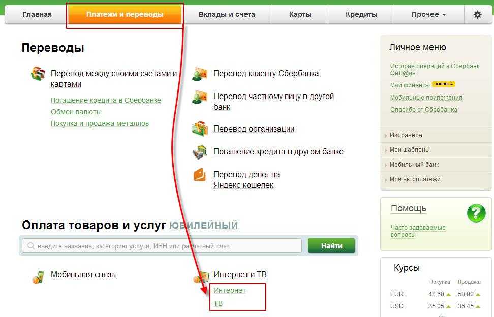 Для пополнения лицевого счета интернет провайдера «смайл нет» через онлайн кабинет сбербанка, необходимо войти в ваш личный кабинет: