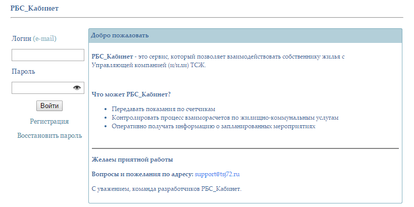 Вопросы по работе непосредственно личного кабинета обсуждаются по почте support@tsj72.ru.