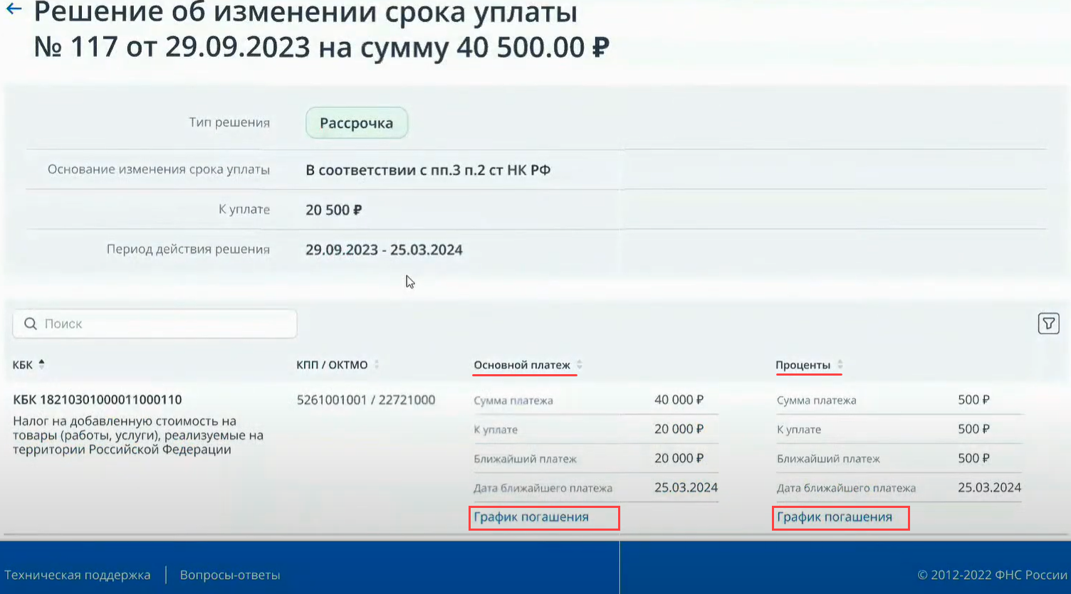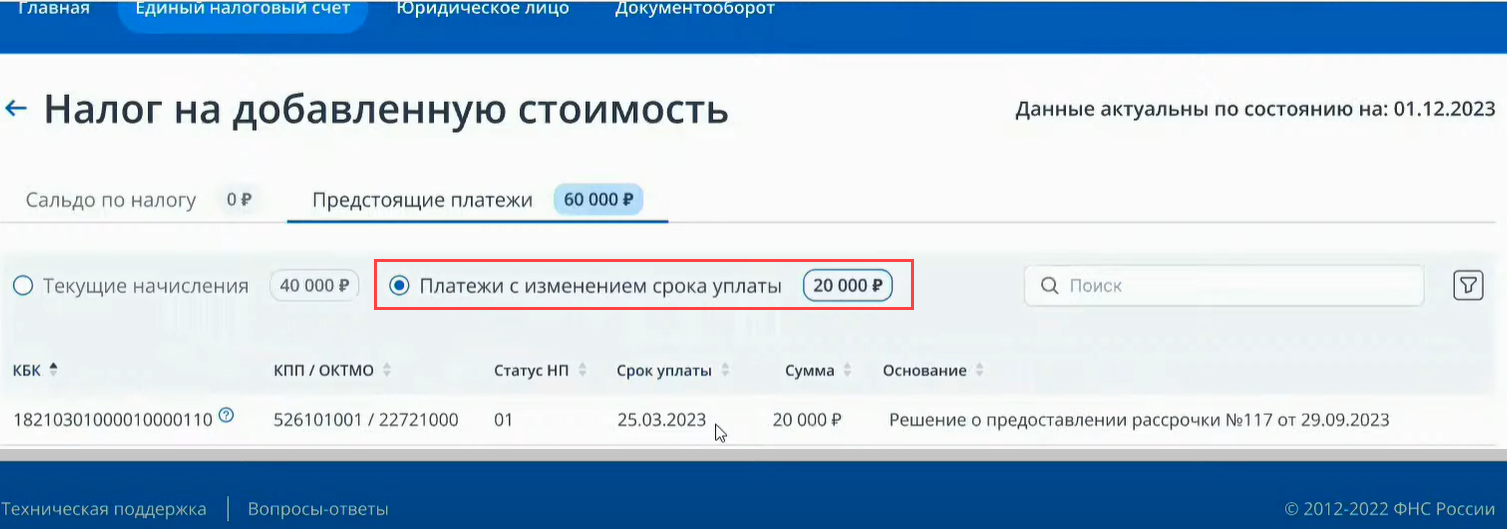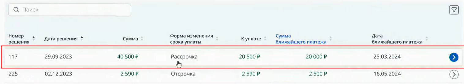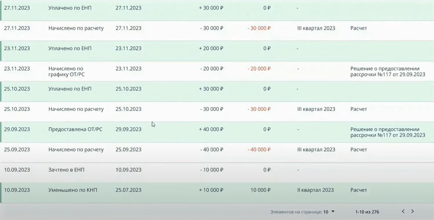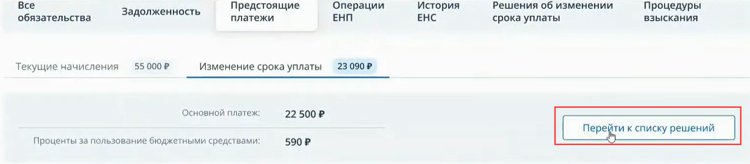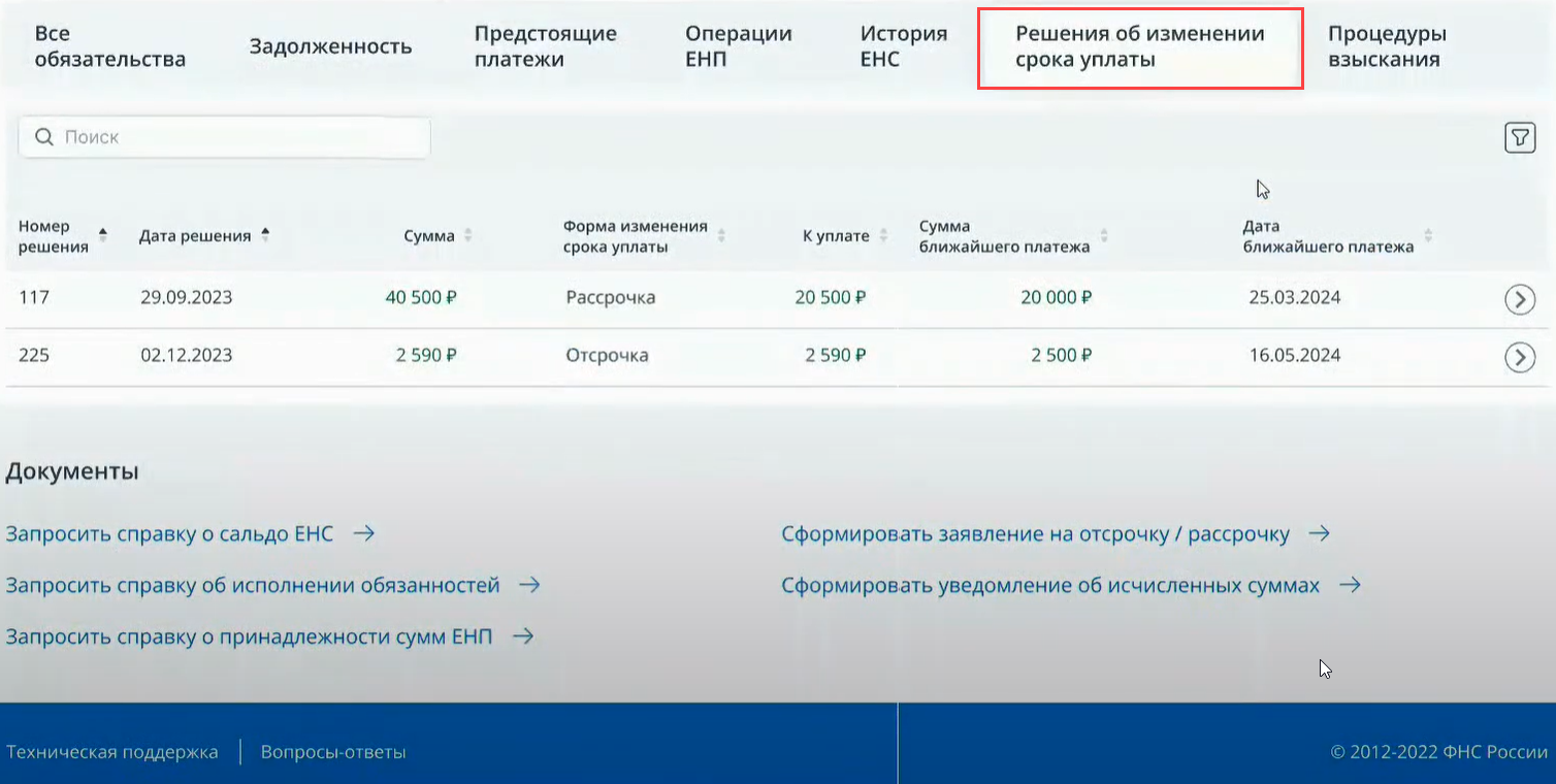 Например, по причине решений о налоговой рассрочке или отсрочке. Из этой же формы можно перейти к их списку на соответствующей вкладке.