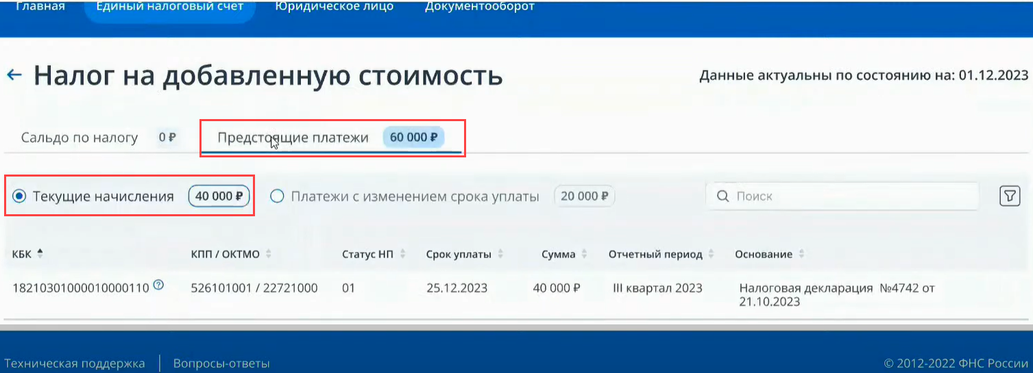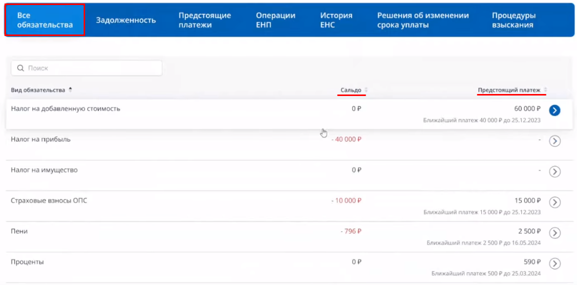 Таким же образом можно расшифровать предстоящие платежи по выбранному виду обязательства, например, по НДС.