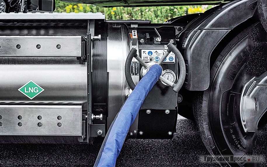 Технология сжижения природного газа предусматривает охлаждение его до очень низких температур, при которых газ переходит в жидкое состояние (LNG) и значительно уменьшается в объёме. Это означает, что автомобиль не надо оборудовать множеством газовых баллонов, ему достаточно иметь один или два криогенных топливных бака, предназначенных для хранения СПГ. Но этого объёма топлива автопоезду уже хватает для осуществления региональных и даже магистральных перевозок на значительные расстояния. То есть движение на СПГ вполне можно рассматривать, как полноценную альтернативу дизелю на маршрутах длиной в 300–1000 км с одной заправки.