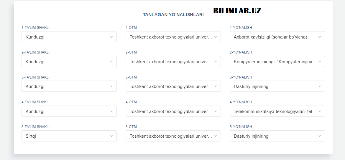 Tavsiya etamiz: Kunduzgi, sirtqi, kechki, imtiyorlar bo’yicha 2022-2023-o‘quv yili uchun o‘tish ballari
