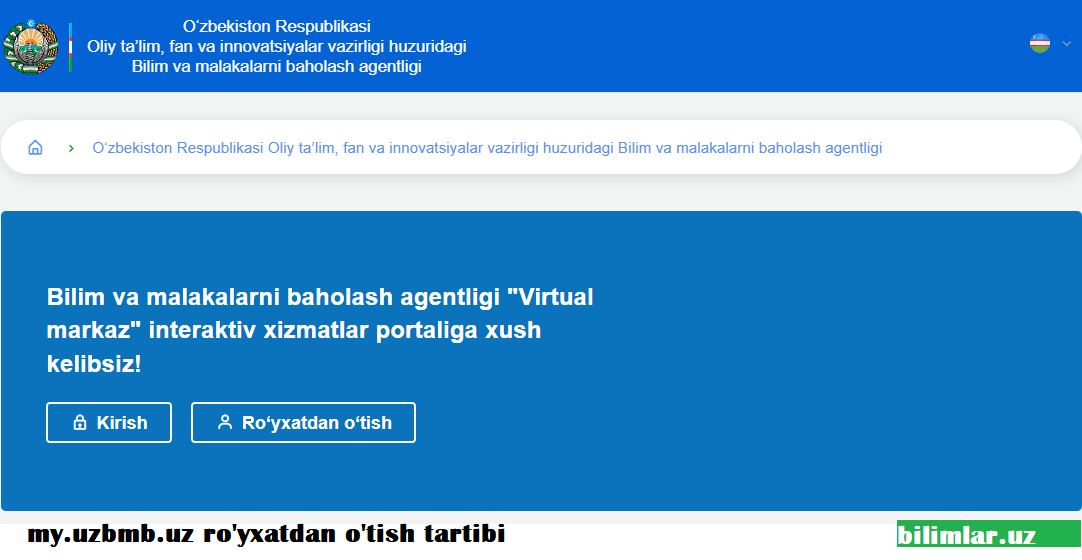 my.uzbmb.uz ro‘yxatdan o‘tish tartibi