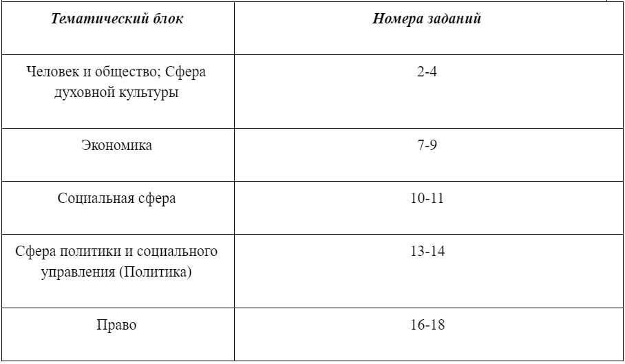 Тестовые задания логически связаны с каждым из шести тематических блоков. Лайфхак: вы можете быть уверены в том, что определенному номеру задания соответствует конкретный тематический блок. Например, № 9 — всегда задание по экономике, а № 13 — по политике. За каждый правильный ответ дают 1 балл.