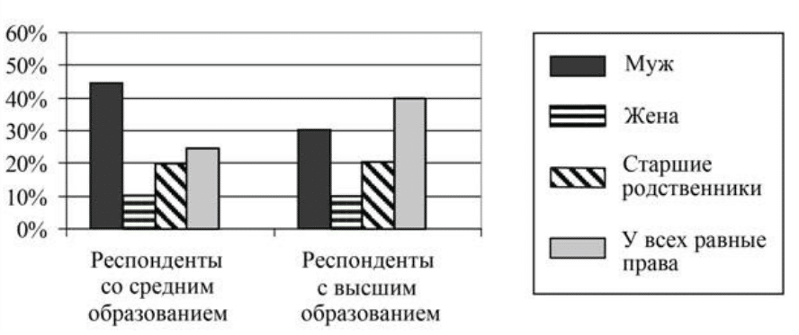 В ходе социологического опроса группы 25-летних граждан страны Z респондентам с разным уровнем образования задавали вопрос: «Кто должен быть главой семьи?».