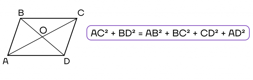 - Сумма квадратов диагоналей равна сумме квадратов всех сторон.