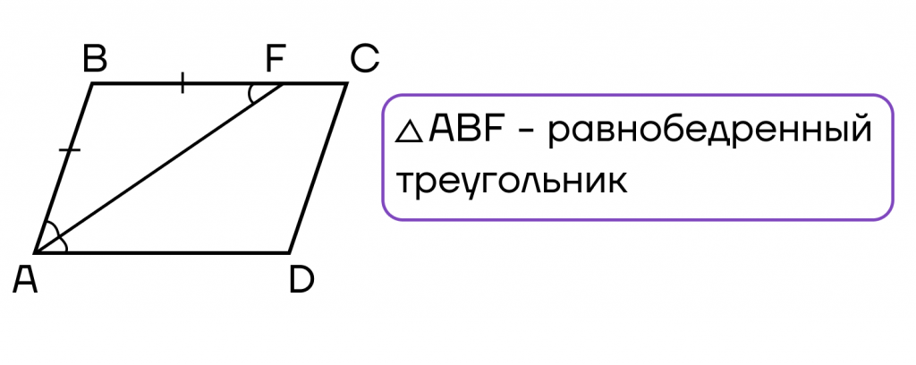 - Биссектриса, проведенная из угла параллелограмма, отсекает от него равнобедренный треугольник.