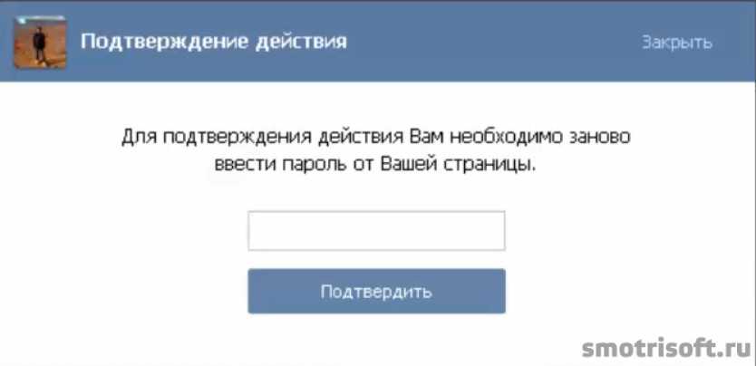 Вводим свой пароль от вконтакте и нажимаем подтвердить.