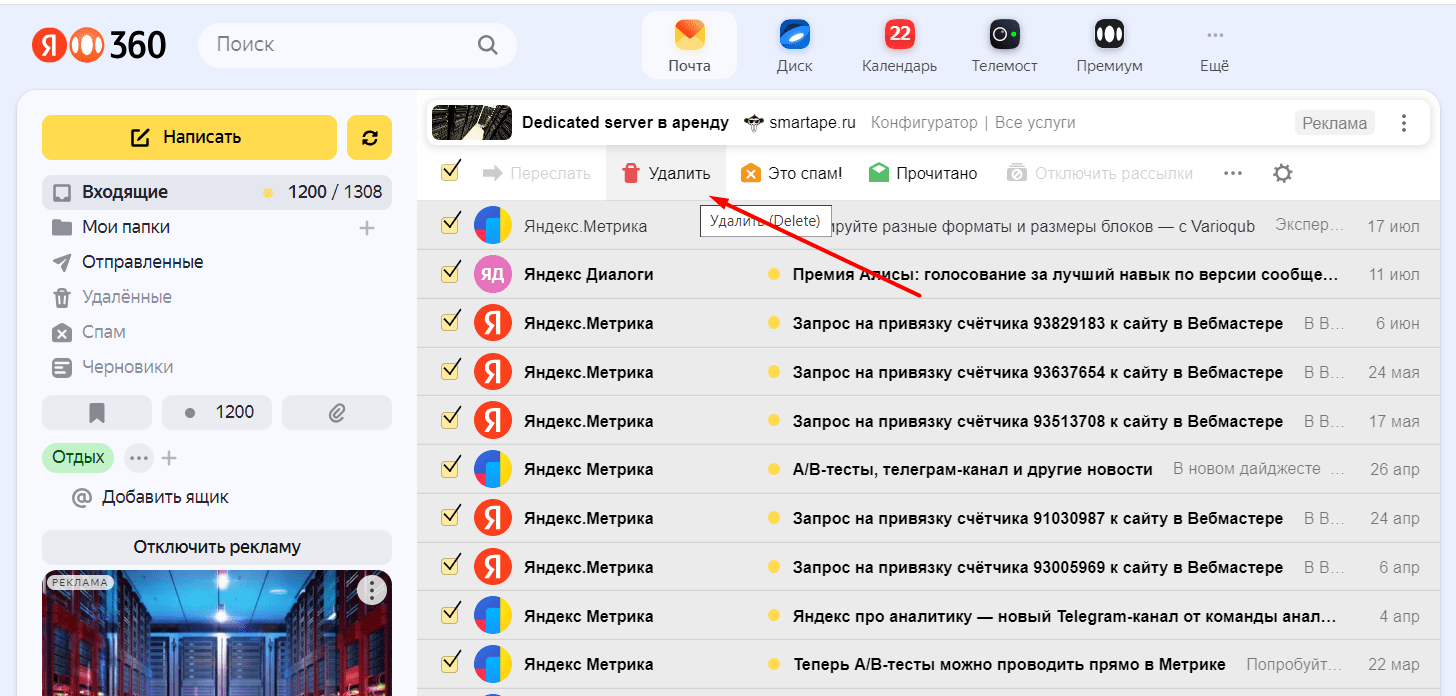 Иногда проблемы с доставкой корреспонденции связаны с тем, что почтовый ящик переполнен. Ресурс обладает лимитом на объем документов. Несмотря на то, что он является довольно большим, проблема может возникать. Определить, что причина заключается именно в этом, несложно. В таком случае даже привычные ежедневные рассылки доставляться не будут. Чтобы решить проблему, нужно отметить ненужные сообщения и удалить их.