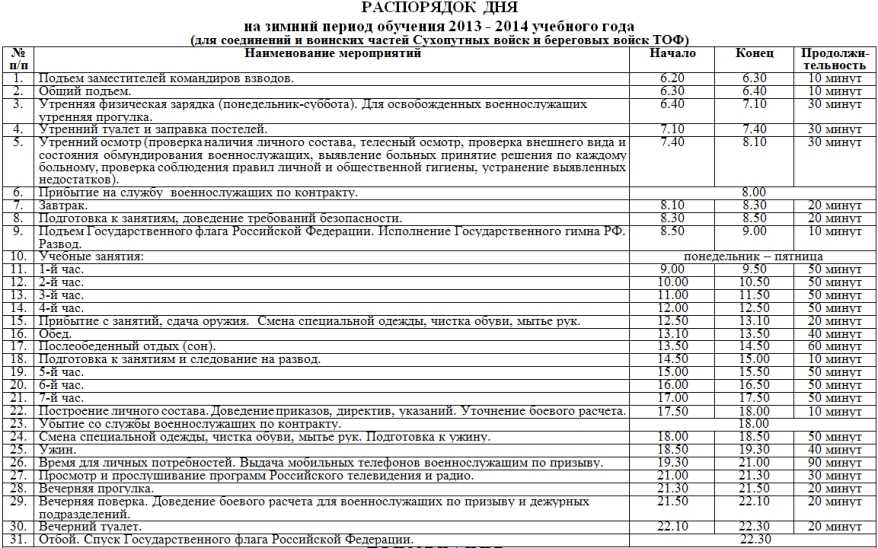 - Воскресенье — выходной ну или в армии между собой его называют днем ФИЗО. В этот день спорт занятия почти всегда занимают весь день, в крайнем случае рота может посмотреть телевизор пару часов, если очень сильно повезет.
