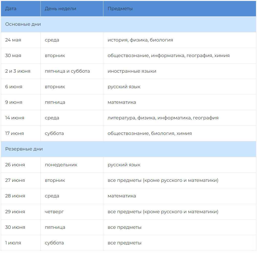 Официальное расписание ОГЭ 2023 года для 9 класса по периодам