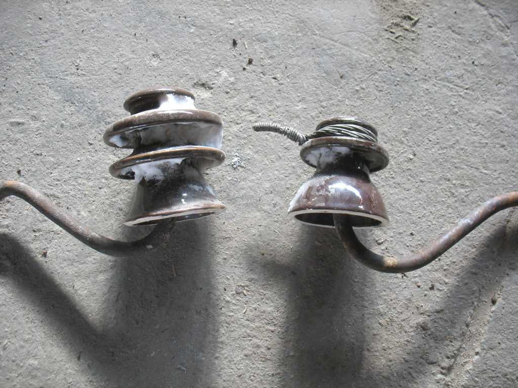Изоляторы на столбах. На фото изолятор со столба, ликвидированного в ходе реконструкции линии. Тридцать лет солнца, ветра, птичьего помета, дождей, морозов нисколько не повлияли на фарфор, он по прежнему выглядит как новенький, достаточно было помыть изолятор с мылом. (Срок службы фарфоровых изделий ограничен из-за появления микротрещин в процессе эксплуатации.)