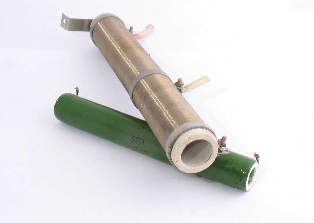 Мощные резисторы имеют основу из фарфоровой трубки. У зеленого резистора обмотка скрыта под эмалью.