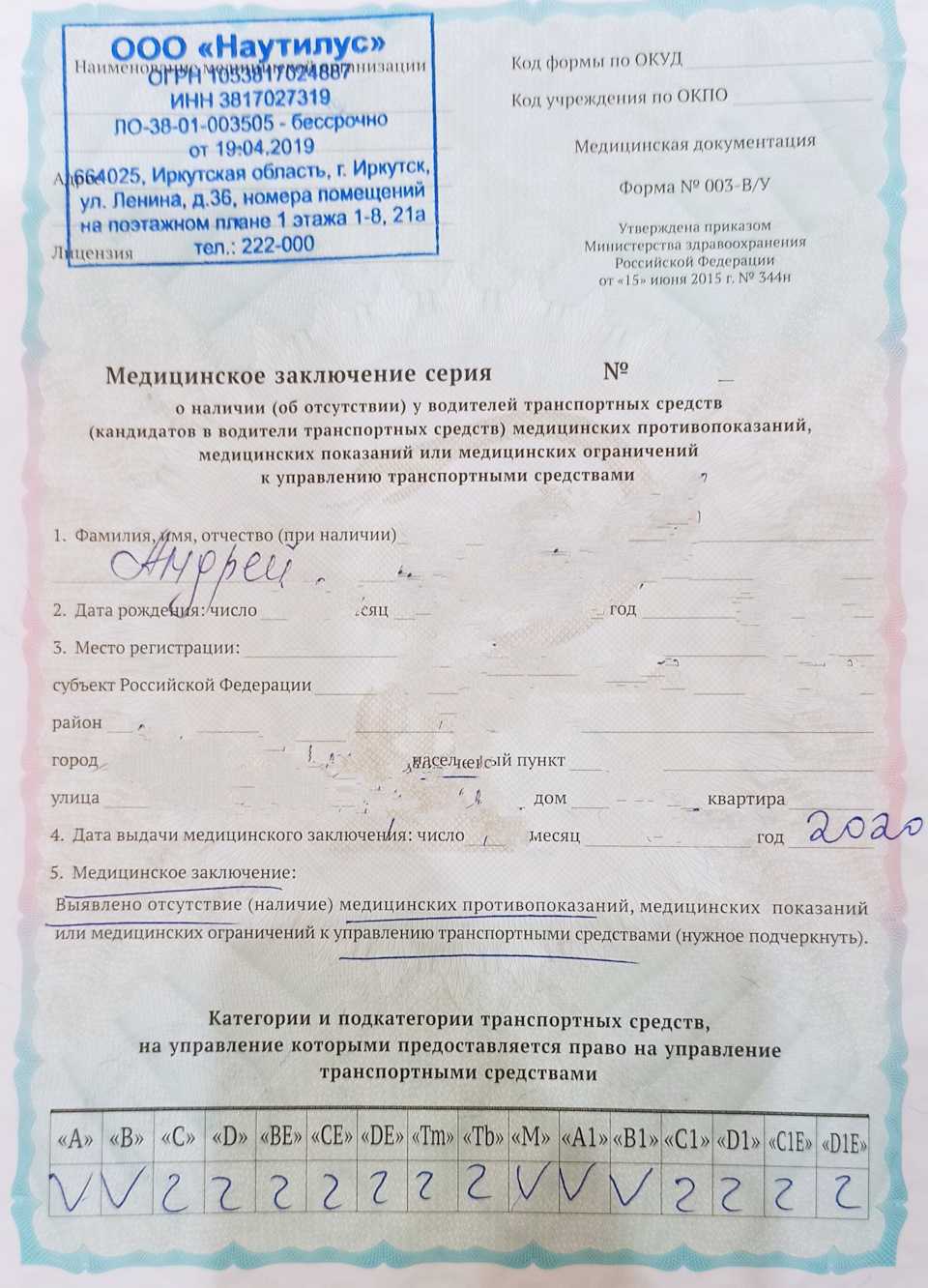 Следующим этапом, пока «идет» обучение проходим медкомиссию на право управления автомобилем категории В. Именно эту справку требуют в Гостехнадзоре для управления квадроциклом. Прохождение медкомиссии в каждом регионе свой квест. У нас самое сложное это проийти нарколога и психиатора т.к. к ним в период пандемии ТОЛЬКО по записи и эта запись растянута на 3 недели. Это самое сложное, дальше в платной поликлинике остальных врачей за полчаса и справка на руках. Опять же, без нарколога и психиатора эту справку не дадут, так что сначало их, а потом остальное.