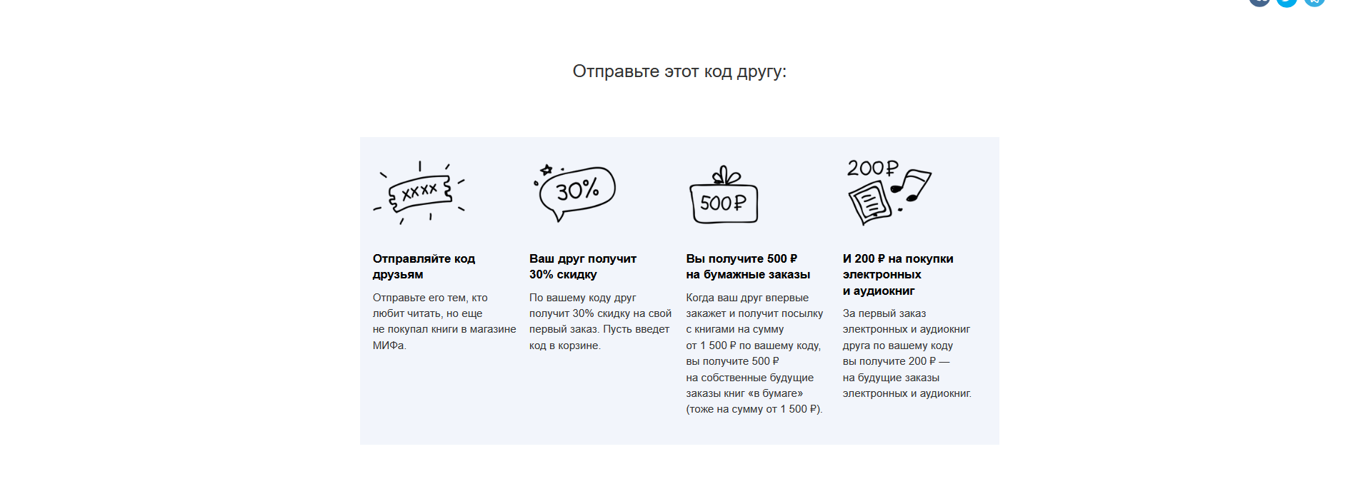 Чтобы поделиться своим реферальным кодом, авторизуйтесь и перейдите на страницу Пригласи друга. Там вы можете поделиться своей ссылкой в сервисах , , LinkedIn, или отправить ее по электронной почте.