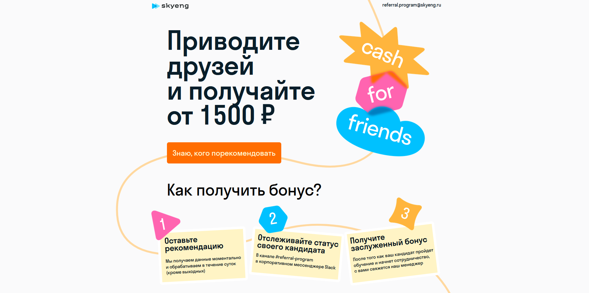 Skyeng выплачивает денежный бонус за успешную рекомендацию