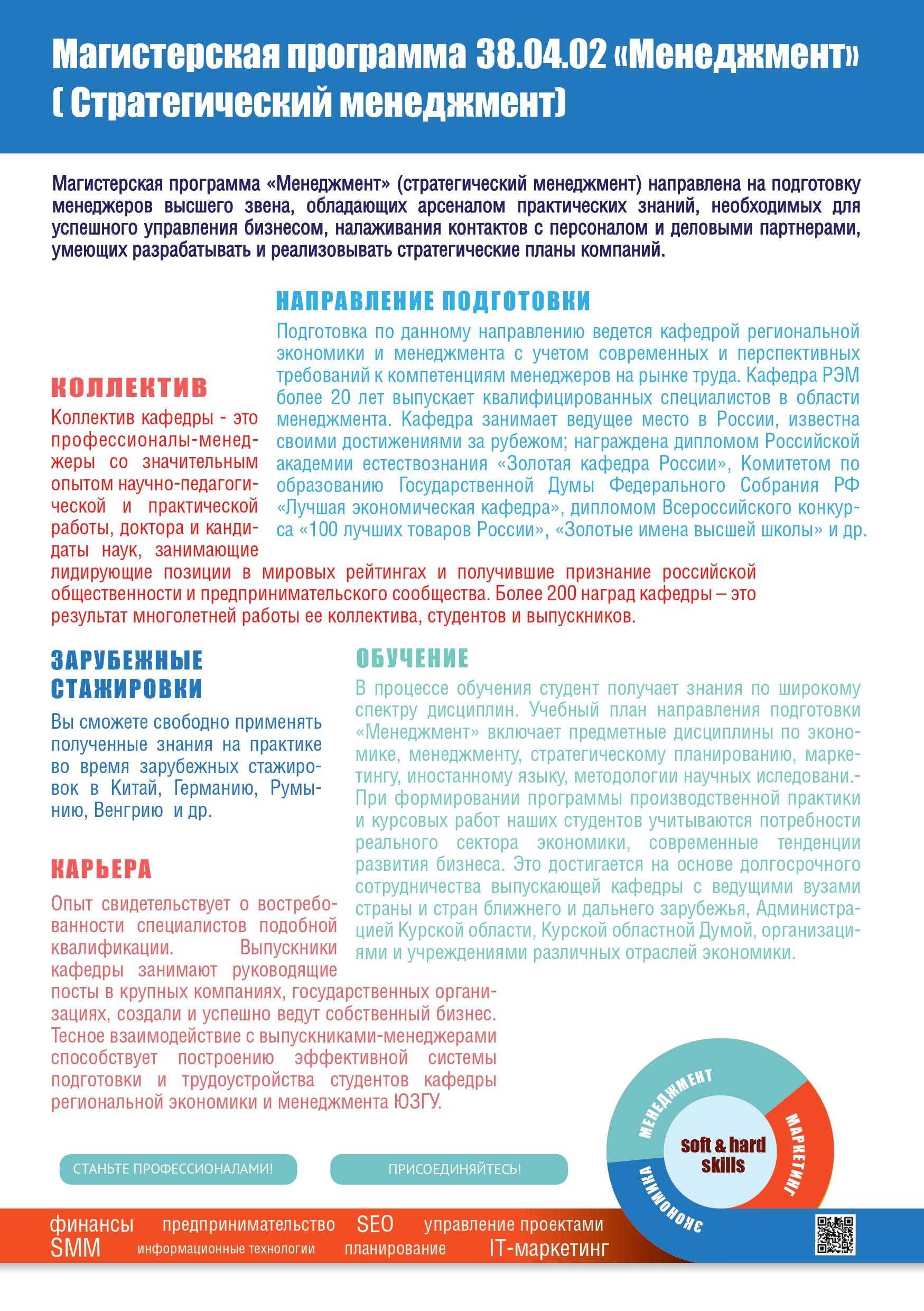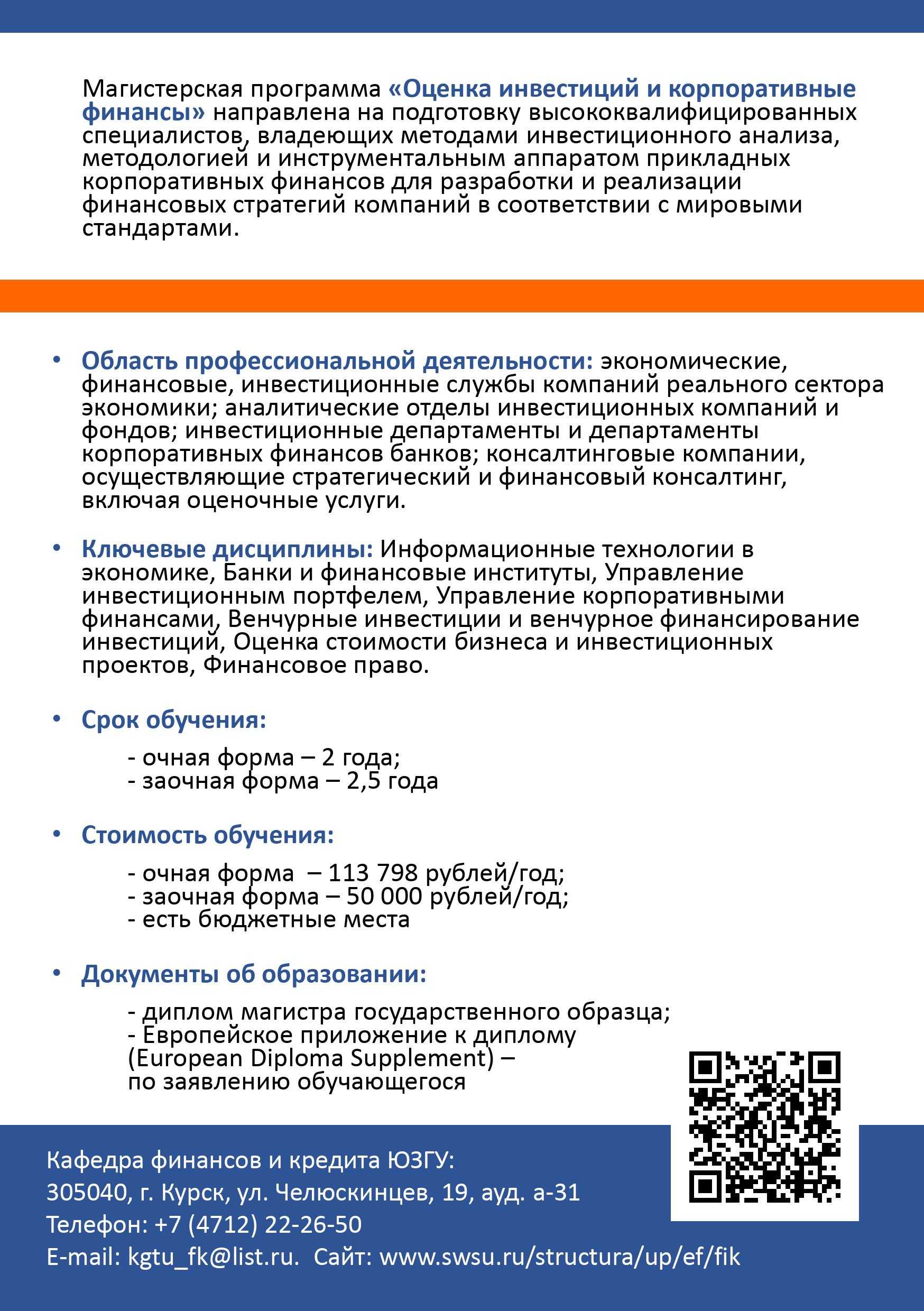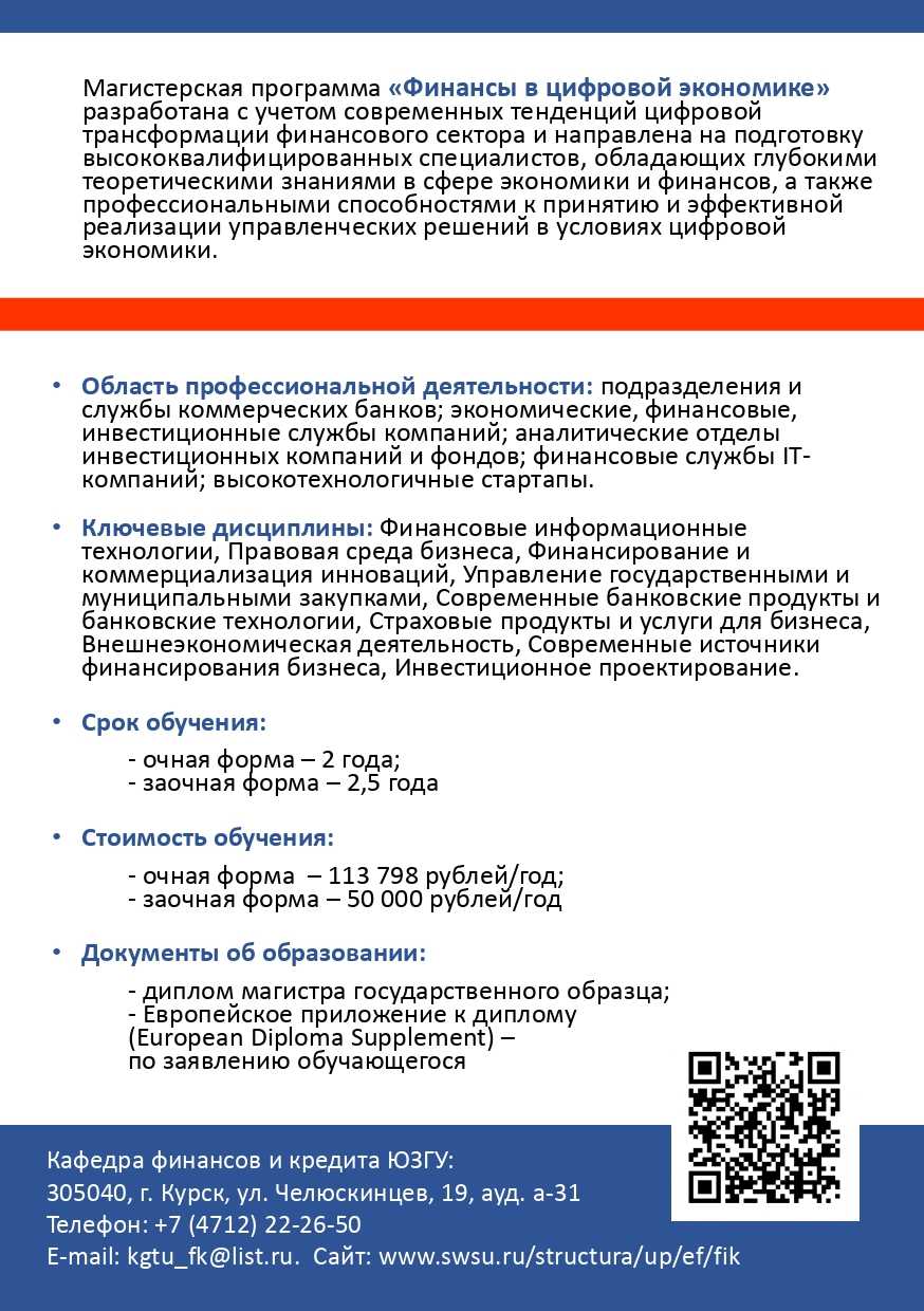 Бюджетных мест: 581 520 рублей в год2 года Язык преподавания: русскийИнформация неактуальна