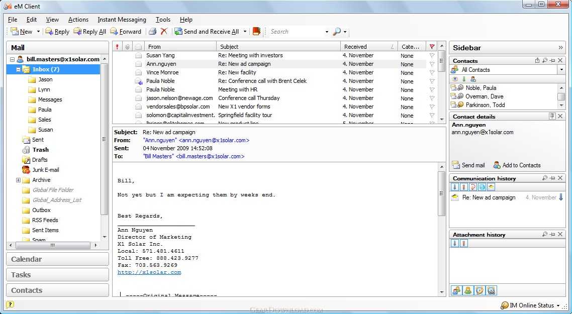 Действительно, eM Client оснащен всеми необходимыми функциями для комфортной обработки корреспонденции: чтения электронных писем, отправка сообщений, перенаправление и сортировка почты и пр.