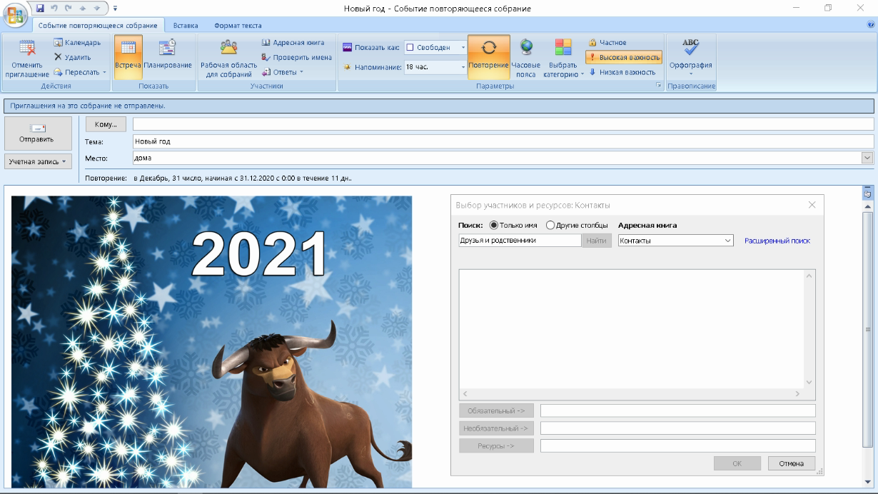 Использовать MS Outlook только для отправки и получения почты – это примерно то же самое, что ездить на автомобиле всегда на первой передаче. Научитесь пользоваться Календарем, и никакие события не будут забыты: достаточно настроить разовую или периодическую функцию напоминания, пригласить участников из списка Контактов