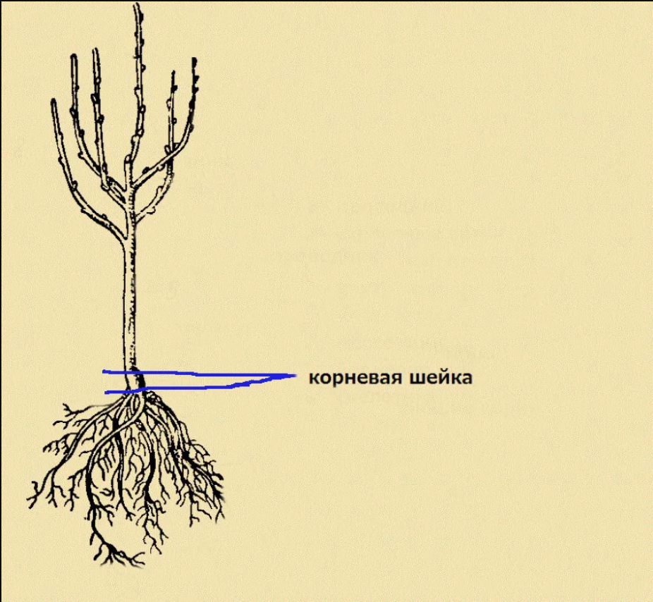 Корневая шейка – это место, где ствол растения переходит в корни. Обычно она находится на 2-3 выше самого верхнего корешка.