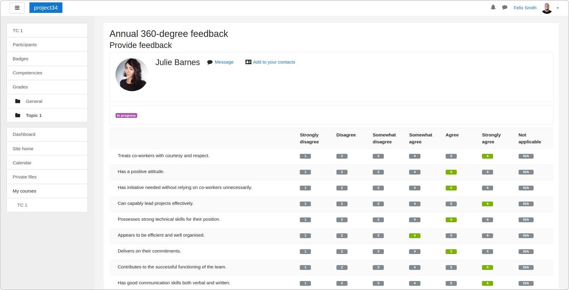 - Метод 360 градусов. В данном методе сотрудника оценивают со всех сторон: его руководители, коллеги и он сам. В Moodle он реализован как плагин 360 Feedback. Вы создаете форму с опросом и оценкой конкретного сотрудника, записываете на нее рецензентов, они заполняют форму, и вы получаете отчет с обратной связью.