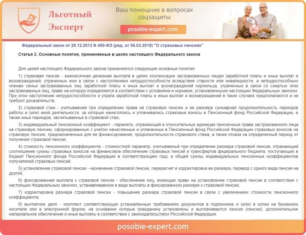 Федеральный закон N 400-ФЗ «О страховых пенсиях». Статья 3